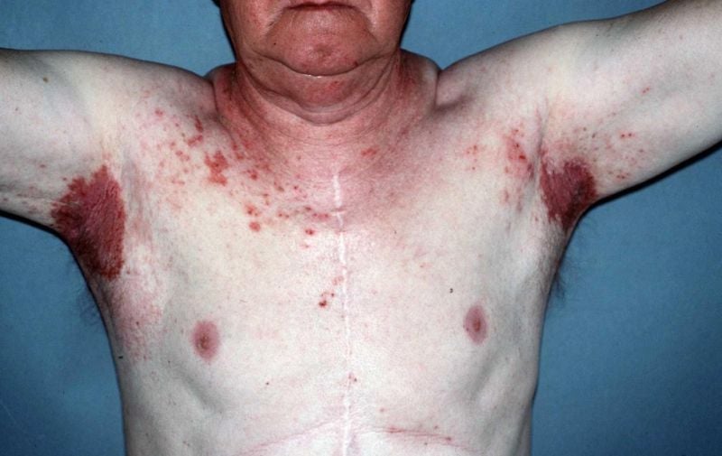 Het komt vooral voor in de huidplooien: